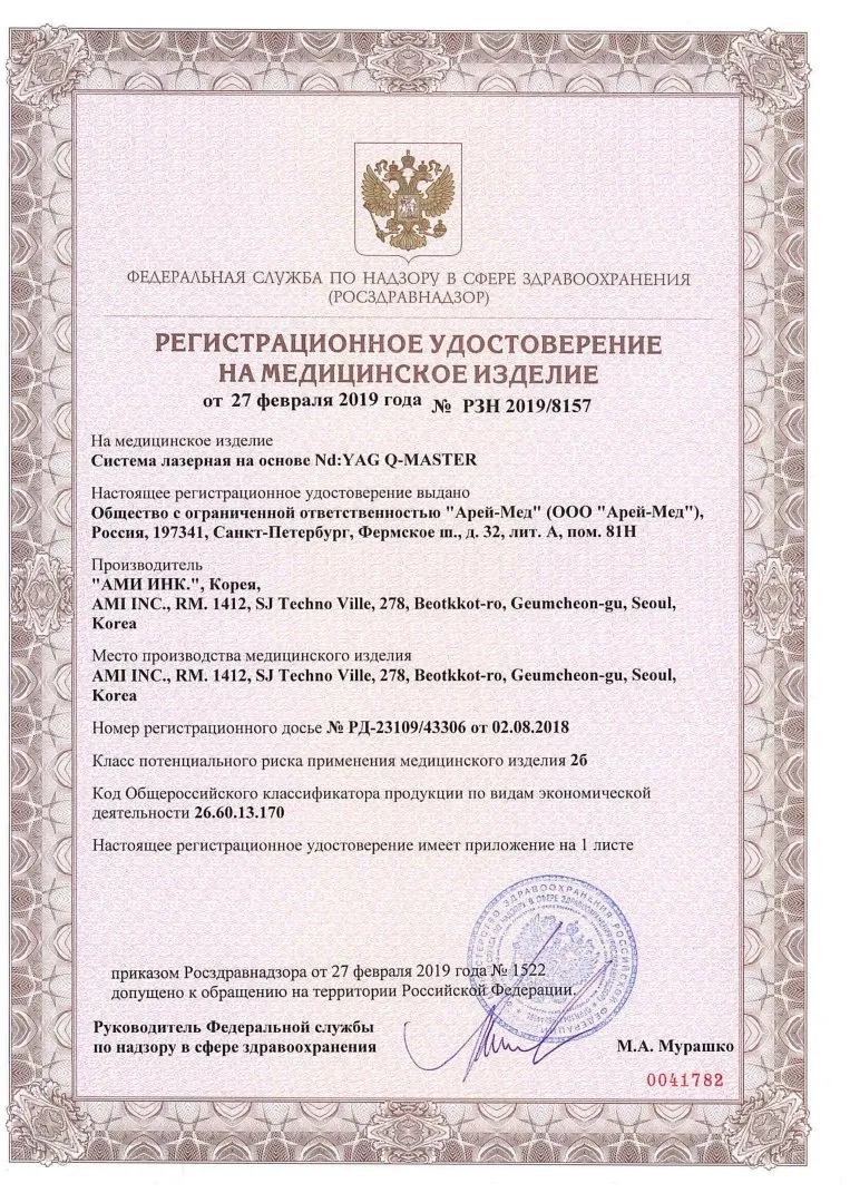 Лазерная система Q-Master от компании A.M.I. (Aesthetic Medical Innovator) — многофункциональный неодимовый лазер с выбором длины волны и высокой степенью надежности. Применяется для устранения сосудистых и пигментных патологий,
