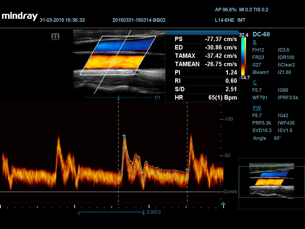 Smart Track обеспечивает быструю интеллектуальную оптимизацию визуализации сосудов простым нажатием соответствующей кнопки. Возможна работа в режимах цветовой, энергетической и импульсно-волновой допплерографии с самостоятельным отслеживанием и сокращением трудоемких этапов. Таким образом, процесс исследования сосудов стал более простым и наглядным.