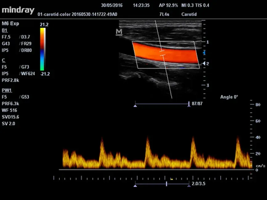 • Автоматический режим расчета комплекса интима-медиа. Определение толщины и сопоставление со стандартами.