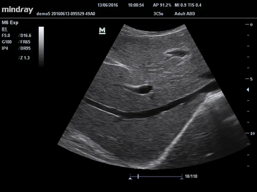 • Технология улучшения визуализации иглы (опция) для биопсии. Позволяет выделять область интереса в соответствии с углом ввода иглы, дает возможность подавлять шумы и выделять саму иглу при введении.