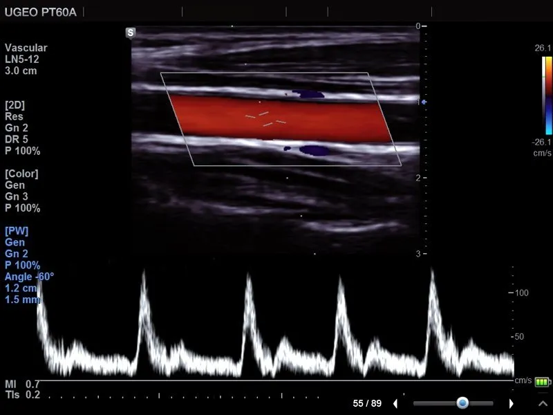 • PW доплер оценки кровотока в сосудах
