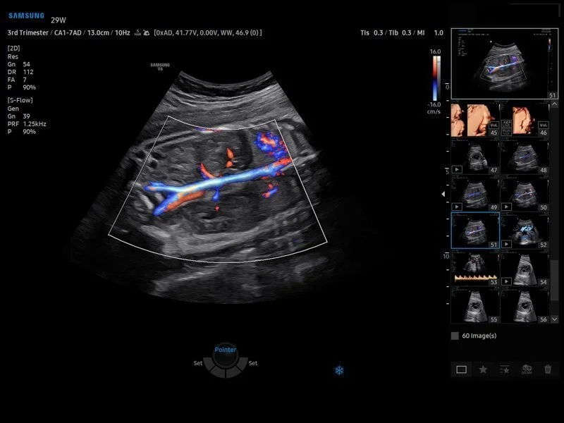 • Многофокусная обработка сигналов, программа управления данными пациентов, программ поиска данных по индексам, автоматическое и ручное составление протоколов и отчетов, форматирование отчетов с добавлением изображений, программы для расчетов в акушерстве — для первого, второго и третьего триместров, гинекологии, исследований сердечно-сосудистой системы плода, ангиологии, органов брюшной полости, щитовидной и молочной желез, суставов, тазобедренного сустава новорожденного;