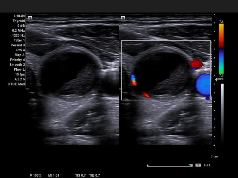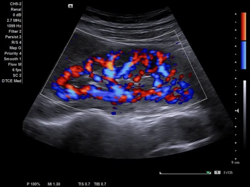 Технология пост-обработки, для снижения спекл-шума и подчеркивания контуров, существенно улучшает контрастность тканей.